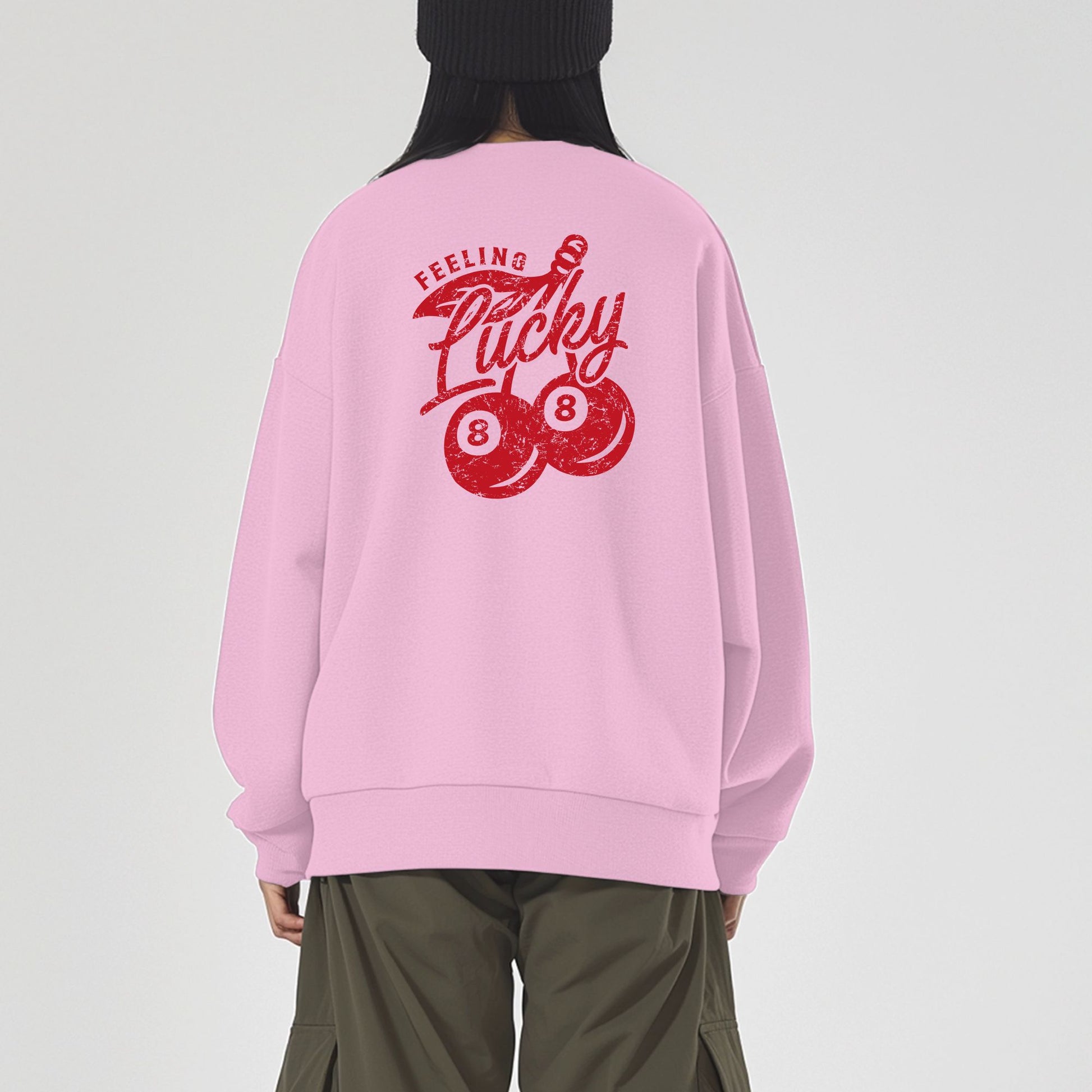 Unisex sweatshirt with Feeling Lucky design printed on the front and back.