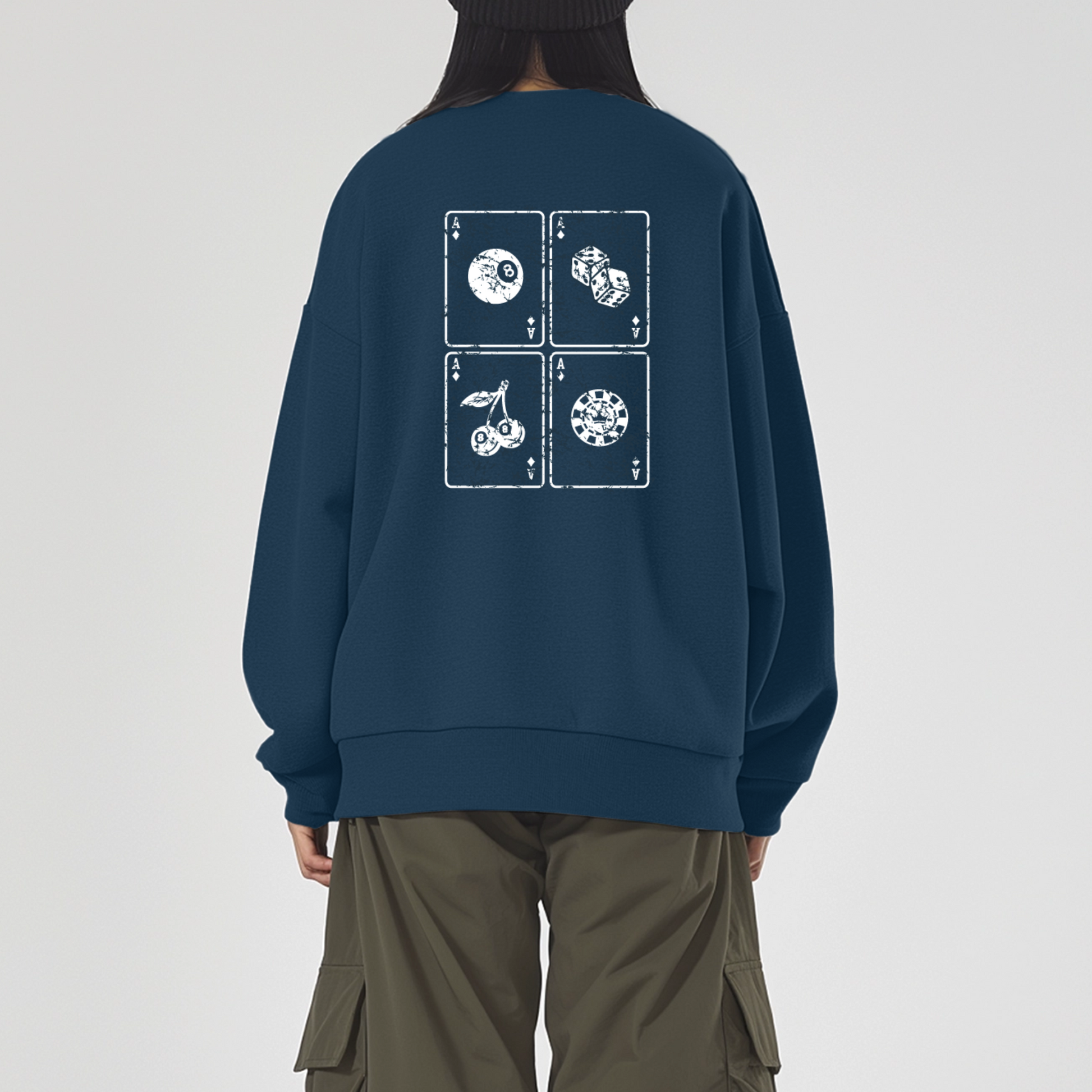 Unisex sweatshirt with Poker Card design printed on the front and back.