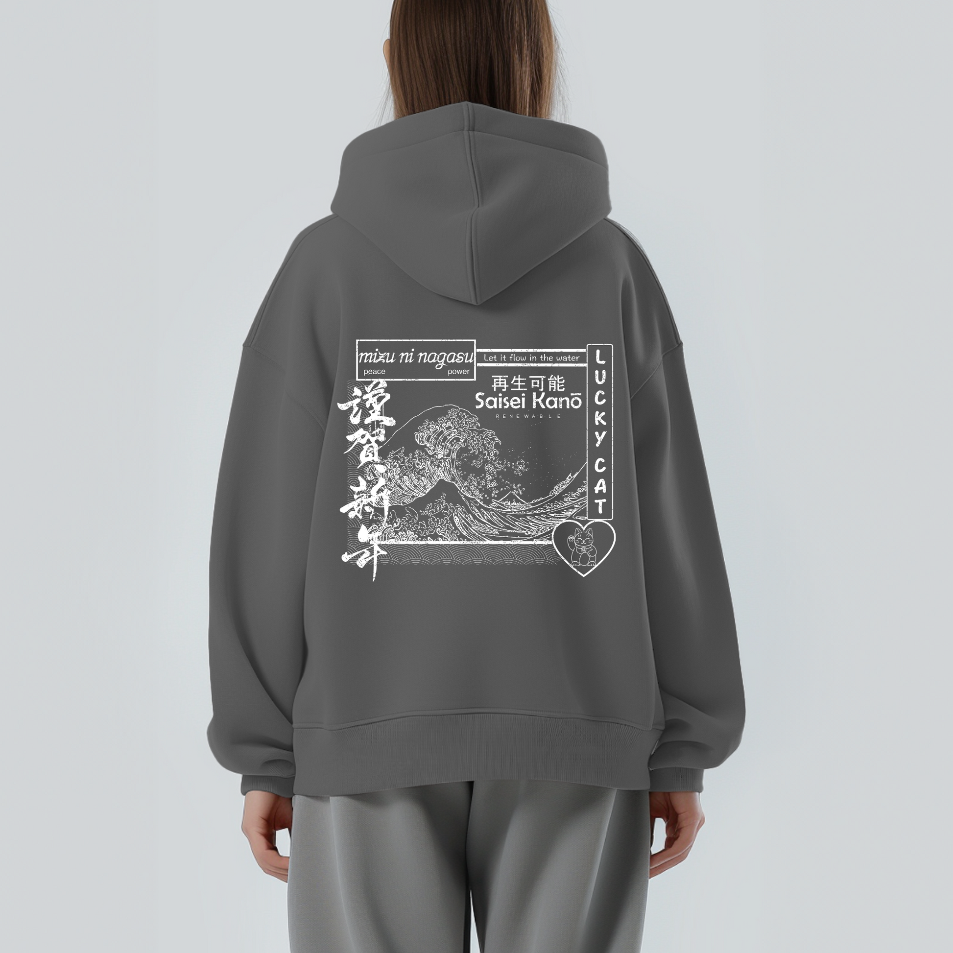 Lucky Cat Hoodie - Charcoal